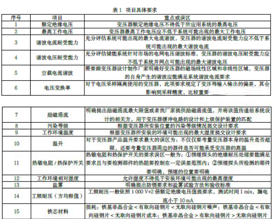 為變壓器的設(shè)計提供要求,需按下表中列出的具體項目要求: