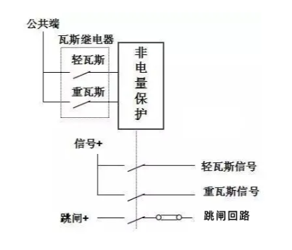 由油、氣、溫等非電氣量組成的變壓器保護(hù)稱為非電氣保護(hù)。主要包括瓦斯保護(hù)、壓力保護(hù)、溫度保護(hù)、油位保護(hù)和冷卻器全停保護(hù)。非功率保護(hù)根據(jù)現(xiàn)場需要跳閘或發(fā)送信息。